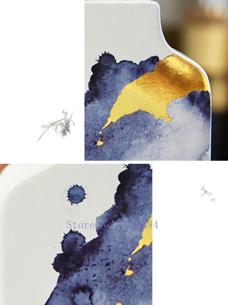 Керамическая чернильная ваза ручной работы в стиле ретро, Золотая Цветочная композиция, Современное украшение для дома, настольные поделки