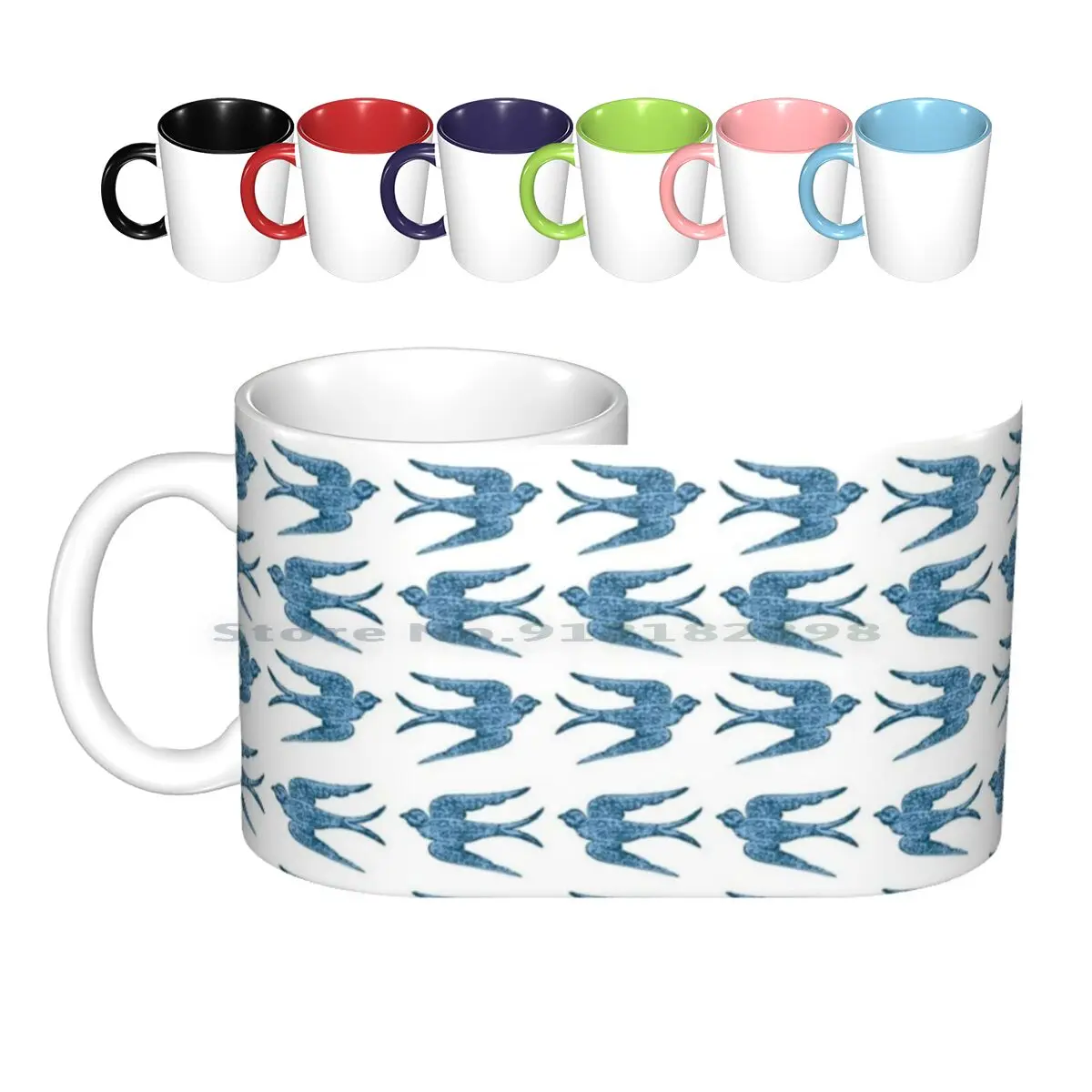 Керамические кружки Swift Bird, кофейные чашки, кружка для молока, чая, птица, синяя винтажная старинная печать, Bluebird, креативная трендовая винта...