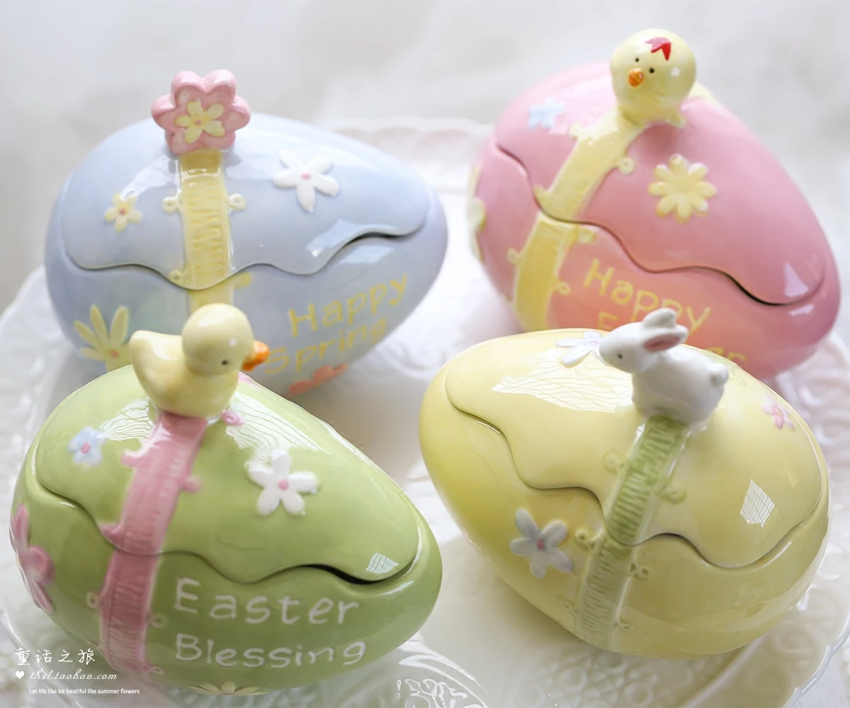Керамические украшения милые маленькие украшения емкость для хранения мелочи ручная роспись шкатулка для ювелирных изделий яйцо Кролик шк...