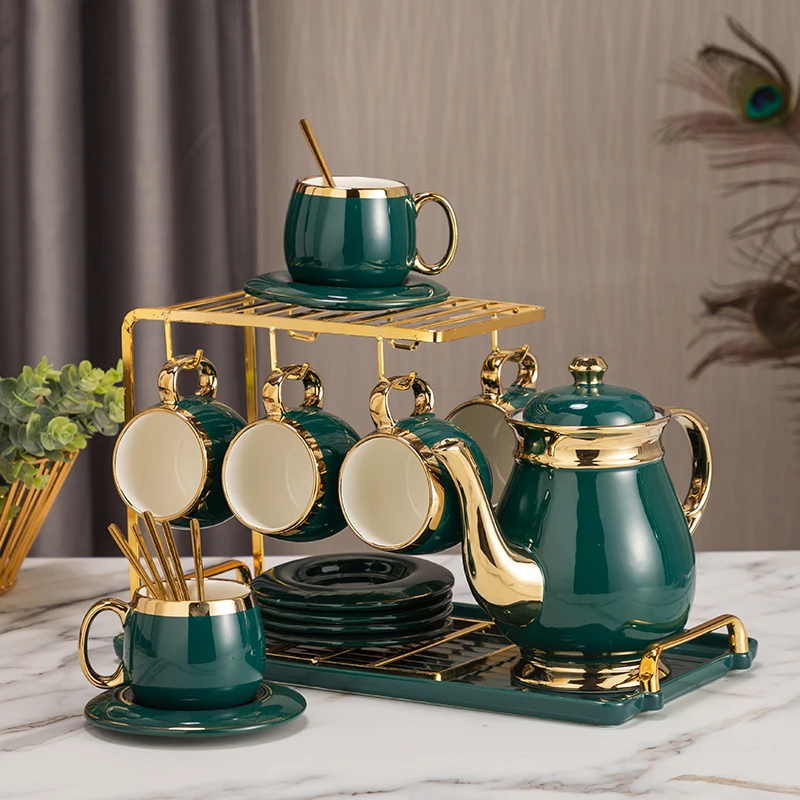 Керамический кофейный чайный набор, креативный зеленый 1 горшок из Пномпеня, 6 чашек, 1 лоток, фарфоровые чайные наборы, кофейник, послеобеденный чайный чайник