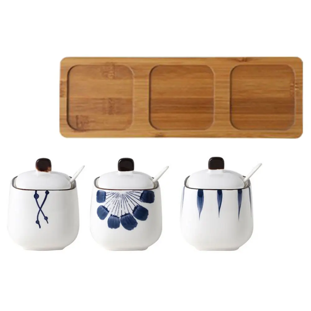 Керамический набор банок для приправ, лоток для приправ, ложки, кухонное хранилище, практичные декоративные многофункциональные контейнеры для специй