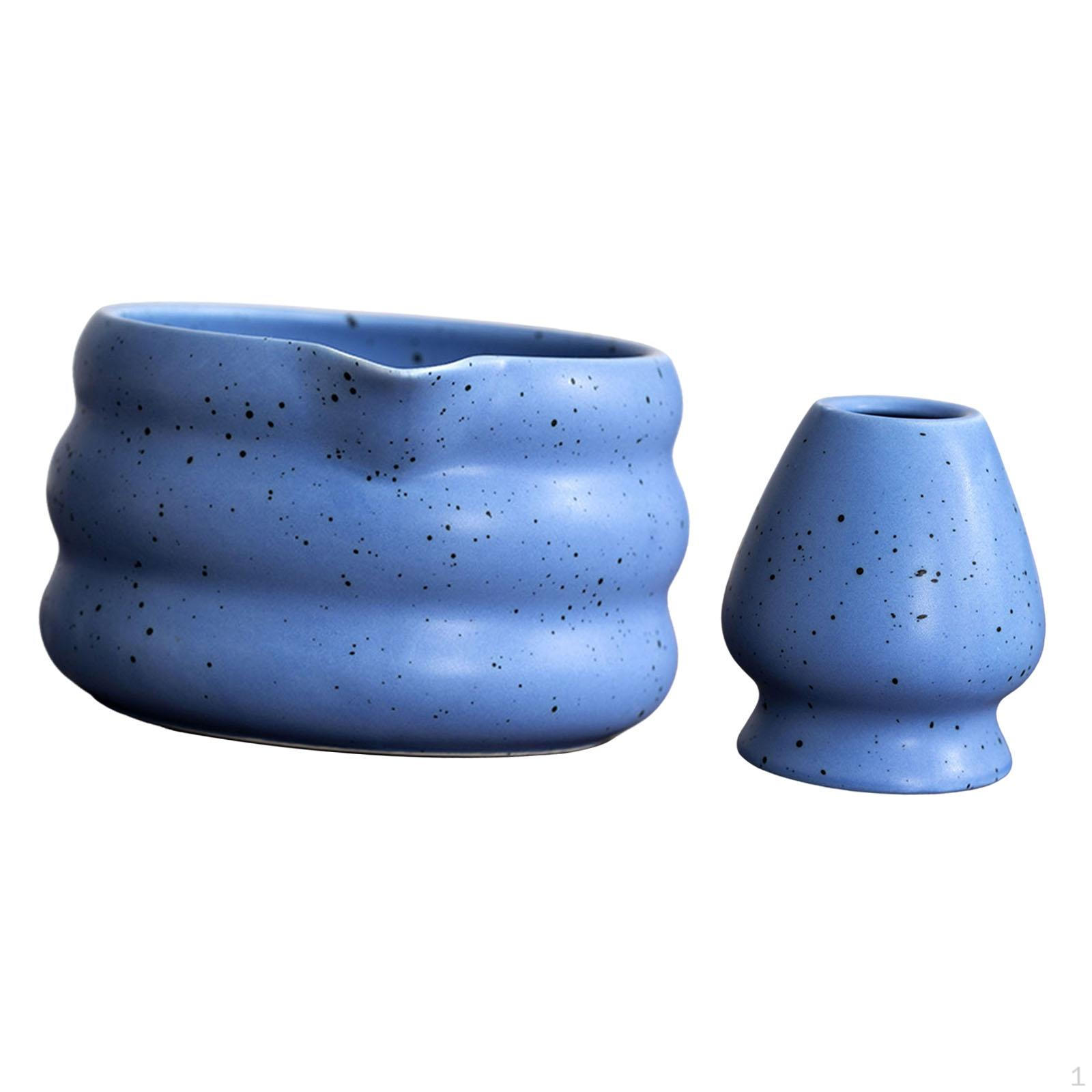 Керамический набор венчиков для матча с чашей и подставкой для приготовления чая синий