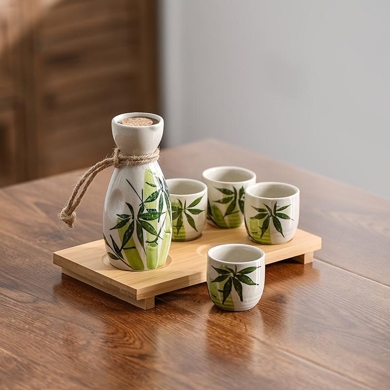 Керамический набор для сакэ в японском стиле с бутылкой и чашками для сакэ, подходящий для подачи горячего или холодного сакэ дома или в ресторане. Ceramic Sake Set [Type A]