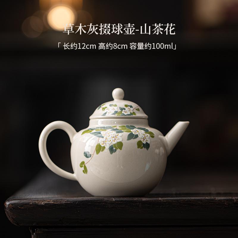 Керамический чайник в стиле ретро с серой травой, эстетичный цветочный горшок с камелией и гортензией, китайский чайник для замачивания чая, столовые приборы, украшения
