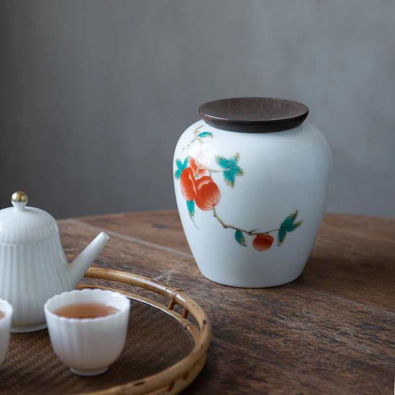 Керамический чайный горшок с деревянной крышкой Celadon Pu'er, белый чай, большой половина Цзинь, герметичная чайная банка, винтажная банка для хр...