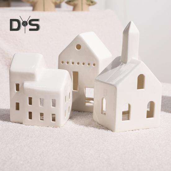 Керамическое украшение для белого дома, чайная свеча, маленький дом, фигурка, статуя, скульптура, домашний офис, гостиная, настольный орнамент, подарок на Рождество и день рождения