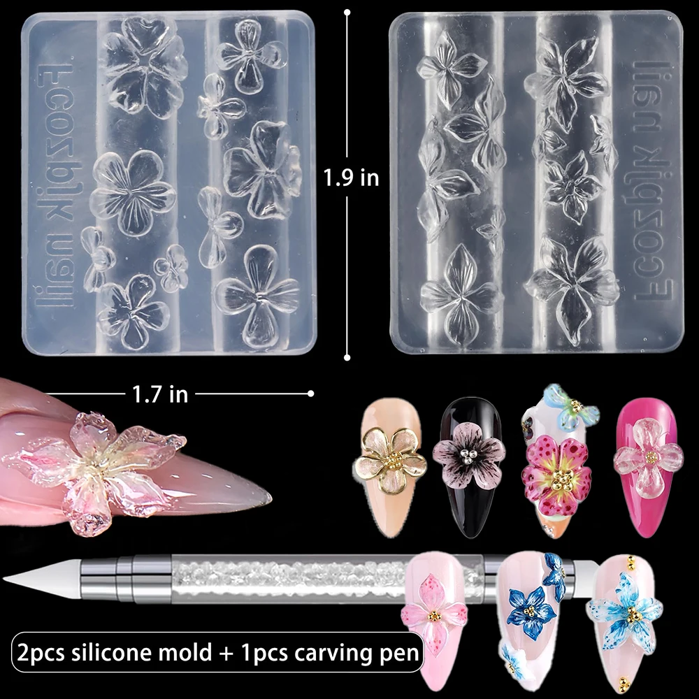 3D New Lily/Hibiscus Flower Nail Silicone Mold Resin Floral Charms Nails Stencils Carving Acrylic Five-Petals Nails Art Template