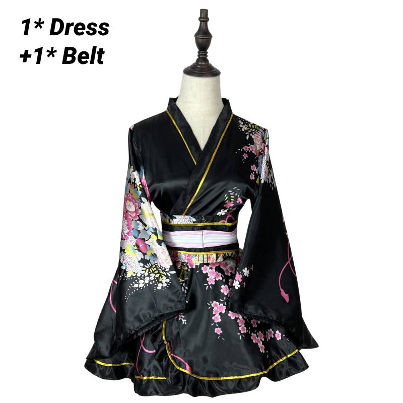 Кимоно Одежда Женская Косплей Вечеринка Костюм Наряд для Девочек Элегантный Белый Черный Красный M чёрный