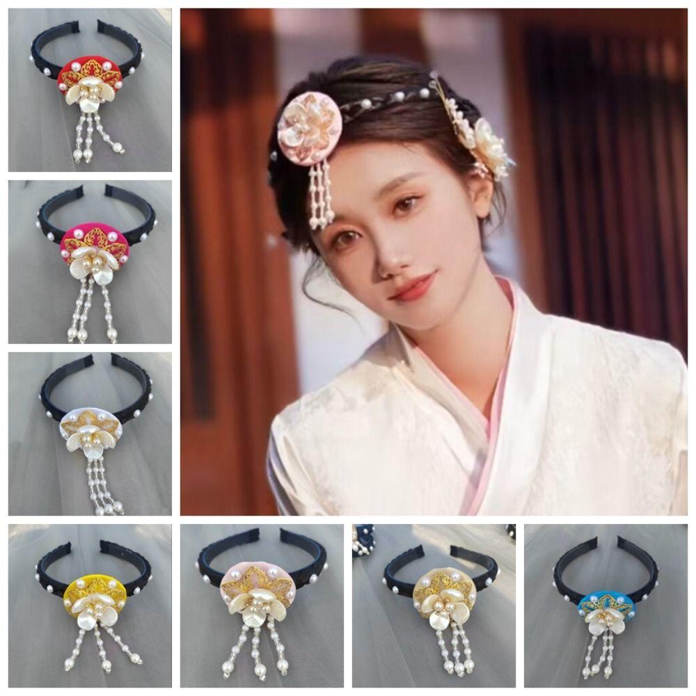Кисточки Ханбок Повязка для волос Цветок Сцена Танец Обруч для волос Подарок Корейская повязка на голову Выступление розы красного