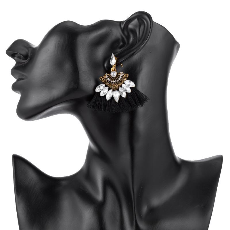 Кисточки Шик Геометрические Серьги со Стразами для Дней Рождений и Юбилеев чёрный