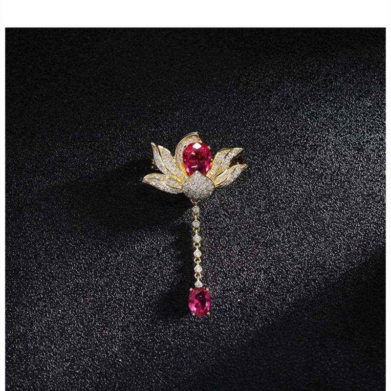 Китайская брошь-кисточка в виде лотоса для платьев-ципао красный