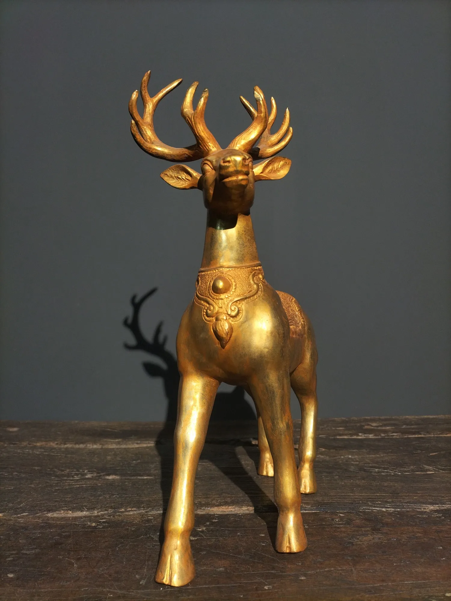 Китайская народная коллекция, старинная бронзовая позолоченная статуя оленя Сика, 15 дюймов, есть способ заработать деньги, собрать предмет ...