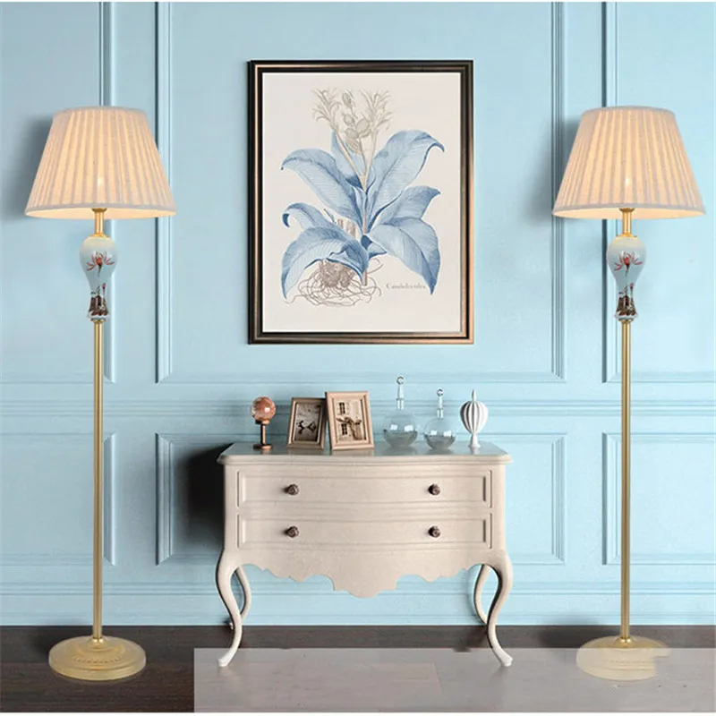 Китайская ручная роспись лотоса, керамическая напольная лампа для спальни, прикроватная гостиная, фойе, для учебы, для чтения, ночная стоящая лампа 190138