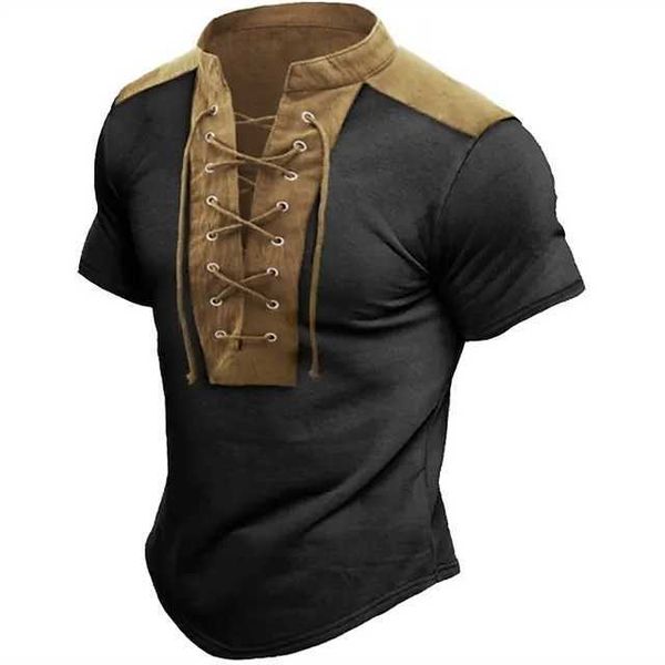 men's t shirt tee color block collar casual daily short sleeve lace up print clothing apparel fashion vintage, White;black