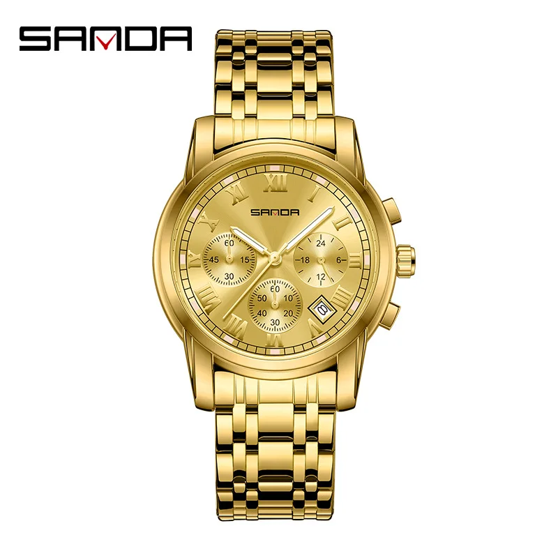 Sanda 7003 Trendy Design New Arrival For Business Men Stainless Steel Strap Japanese Quartz Movement Waterproof Stop Watch