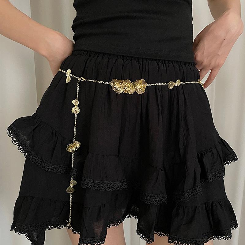 Китайский национальный стиль Золотой цветок Поясная цепочка Женская Супер фея Легкая роскошь Высококлассное ожерелье Богемный стиль С юбкой Пояс золотой