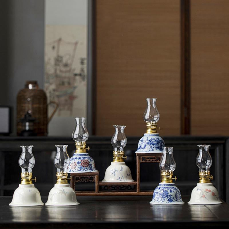 Китайский стиль ремесла DIY керамические лампы Гхи винтажная масляная лампа орнамент керосиновая лампа уникальный стеклянный кабинет спальня украшения
