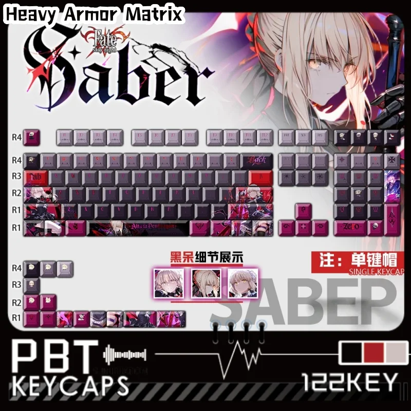 Клавиатура Black Saber с аниме-игровой тематикой, 120-клавишная механическая клавиатура с вишневым профилем, коллекция мультфильмов, подарок, прозрачная милая колпачок для ключей