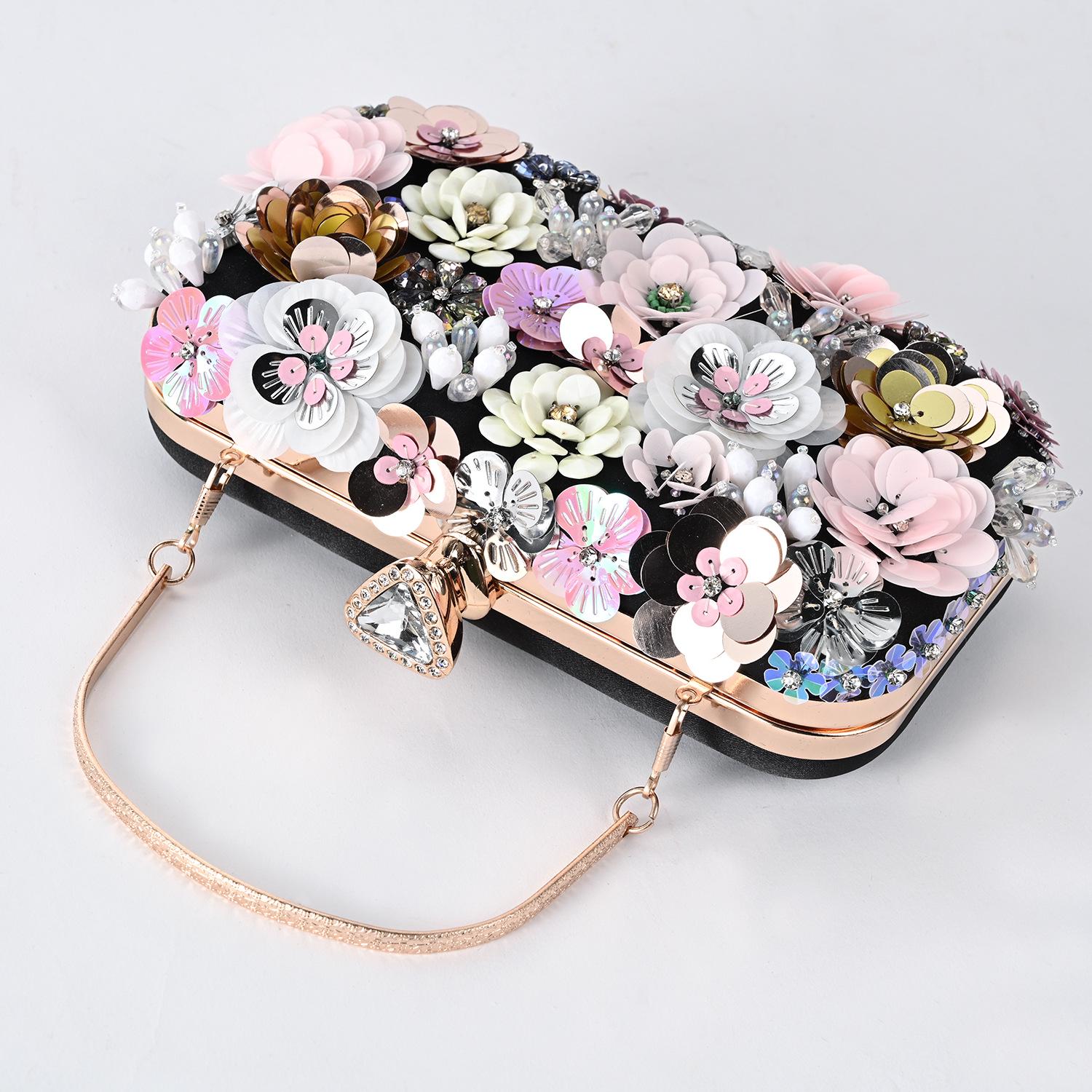 Классическая атласная вечерняя сумка с цветными цветами из пайеток - Клатч для вечеринки ручной работы с бисером для женщин чёрный