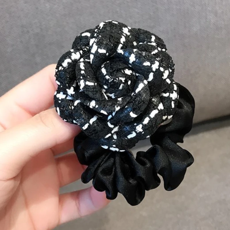 Классическая лента для волос Камелия, черная, белая, в клетку, кольцо для волос, цветок, кишечный круг, эластичная повязка для волос для женщи...