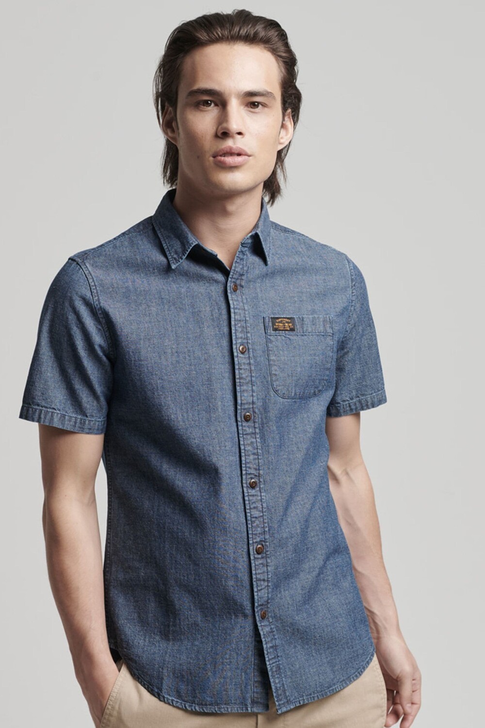 Рубашка с коротким рукавом из 100% хлопка в винтажном ткацком станке Superdry, синий