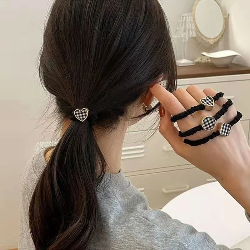 Классическая шахматная доска, черная, белая клетчатая решетка, любовь, клевер, геометрия, высокая эластичность, резинка для волос для женщин...