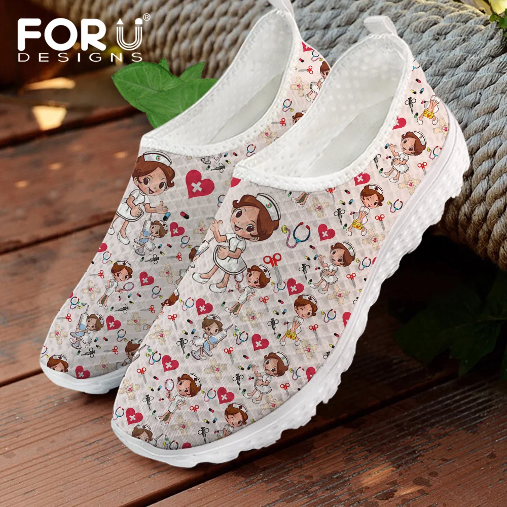 Классические женские туфли FORUDESIGNS с мультяшным принтом медсестры, Новая модная женская сетчатая обувь с мультяшными узорами для уборки дом...