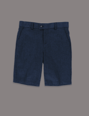 Классические шорты из льна и хлопка с регулируемым поясом для мальчика 2-14 лет