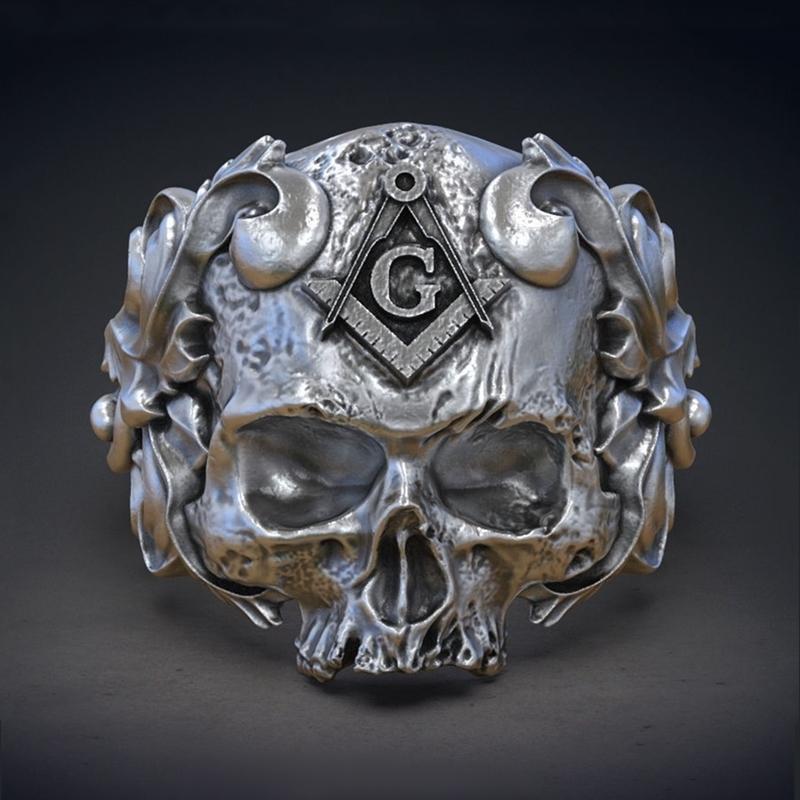 Классический масонский череп из нержавеющей стали 316L в стиле панк, мужское байкерское кольцо с черепом, размер ювелирных изделий 7-14