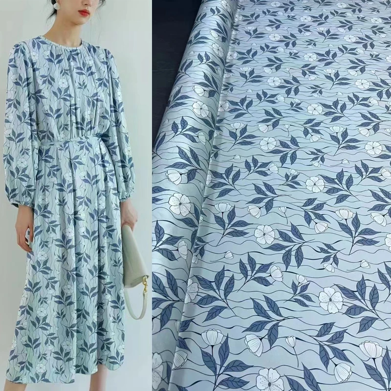 Классический синий рисунок цифровая печать шелковая ткань для одежды Женская Роскошная Высококачественная текстильная ручная ткань для платьев