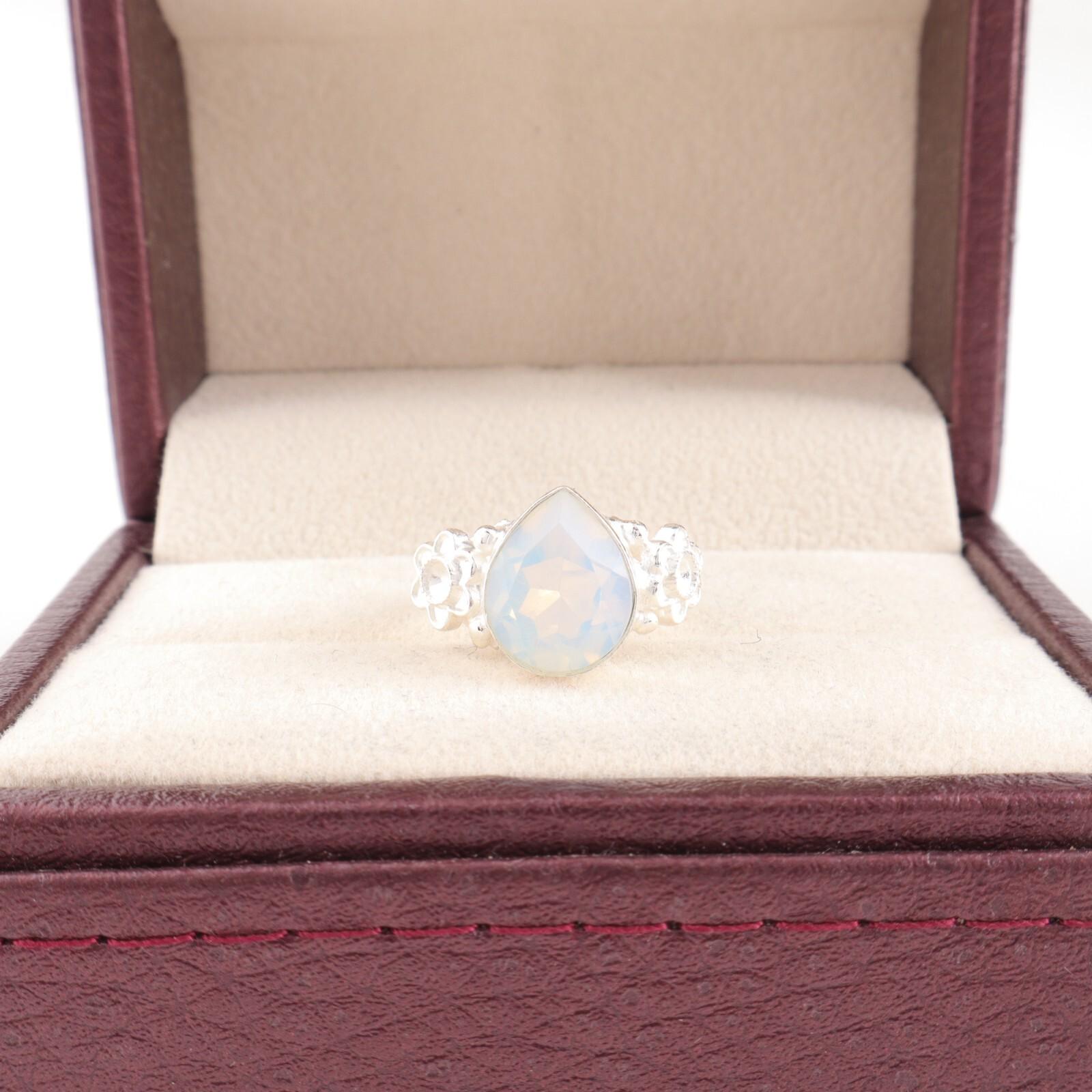 Клеймо 925 Серебро Молочный Опал Драгоценный Камень Ювелирные Изделия Ручной Работы Кольцо Подарок Для Подруги RR-59-20 13