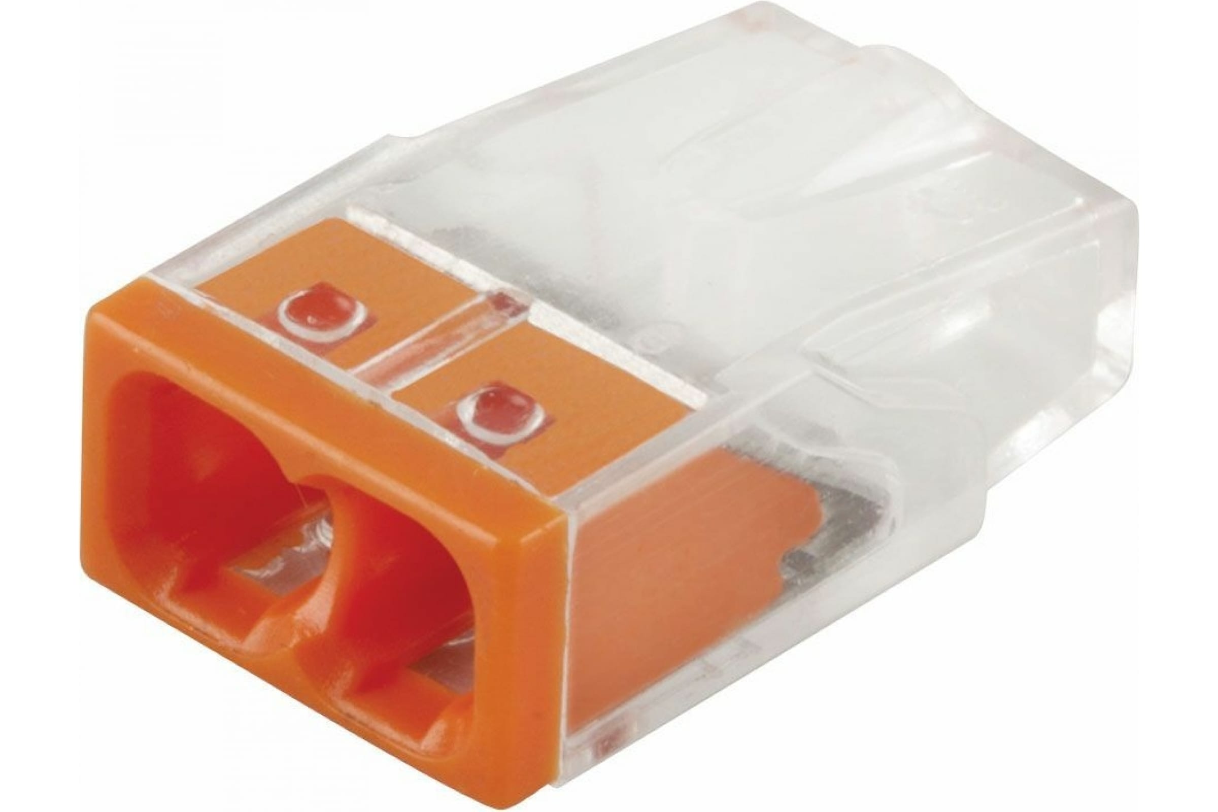 Клемма монтажная STEKKER LD2273-202 2x0.5-2.5 мм2, оранжевая/прозрачная, для подключения одножильных проводников (32388), LD2273-202