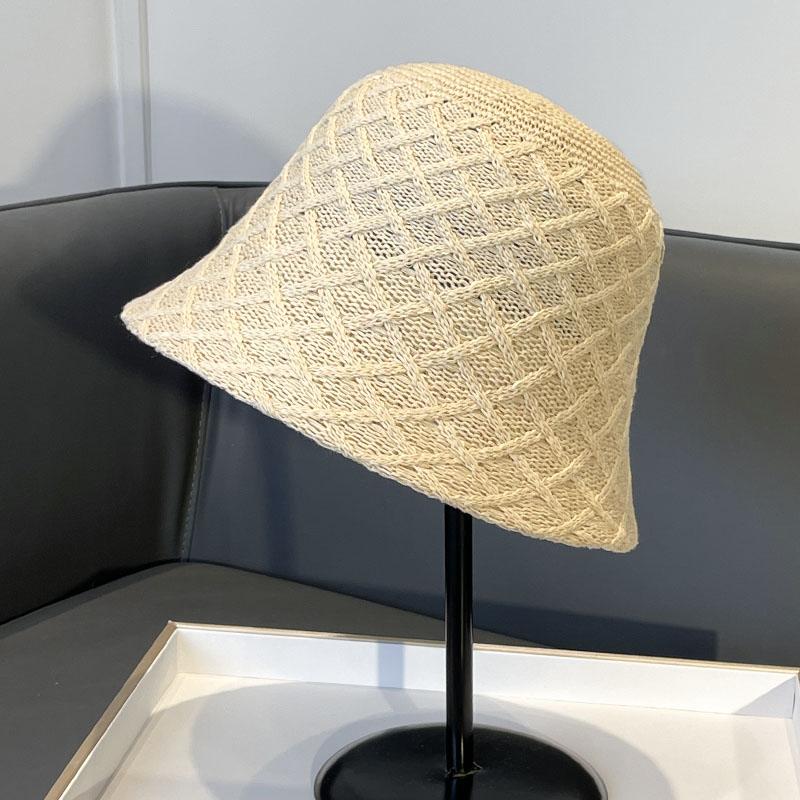Клетчатая вязаная панама женская новая летняя повседневная универсальная солнцезащитная шляпа-ведро Adult (56-58cm) бежевый