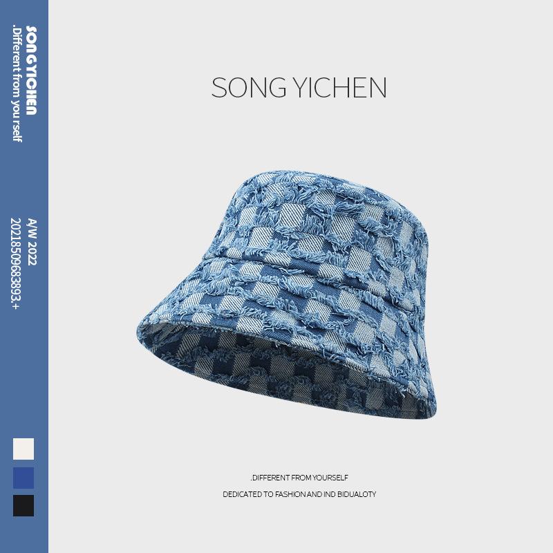Клетчатая джинсовая панама Spice girl женская весенне-осенняя для маленького лица, закрывающая обычное лицо, шляпа с чувством стиля, осенне-зимний тренд M(56-58cm)