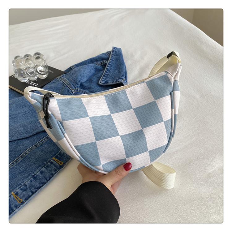 Клетчатая женская сумка 2025 новая модная повседневная сумка-пельмень большой вместимости универсальная плечевая сумка-мессенджер синий