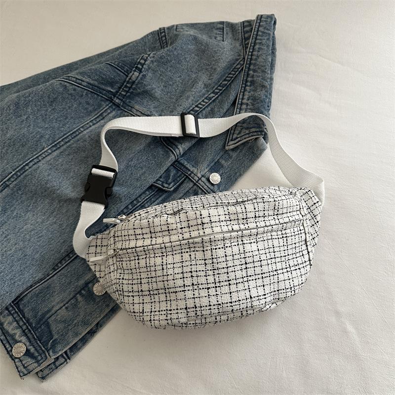 Клетчатая легкая поясная сумка японская милая свежая простая универсальная маленькая женская сумка-мессенджер Mori girl нагрудная сумка белый