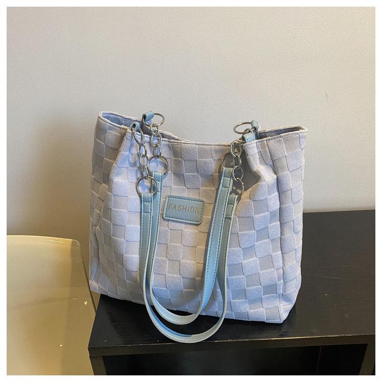 Клетчатая сумка большой вместимости женская 2025 новая повседневная сумка через плечо простая сумка-тоут синий