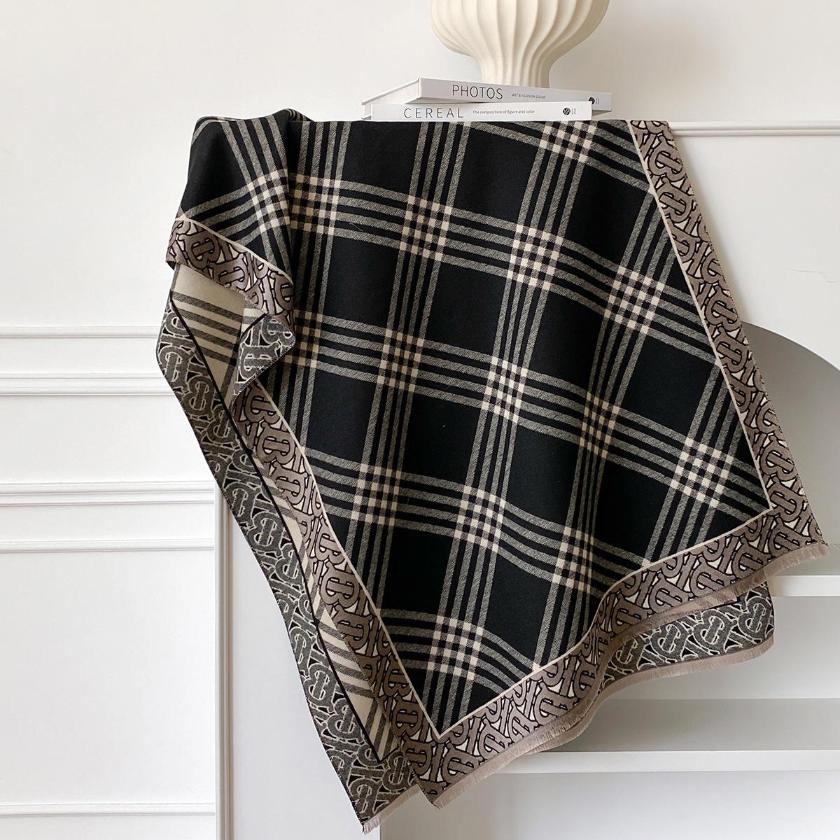 Клетчатая шаль женская осенне-зимняя универсальная накидка с изысканным чувством внешнее одеяло имитация кашемира шаль с бахромой 185*65cm чёрный