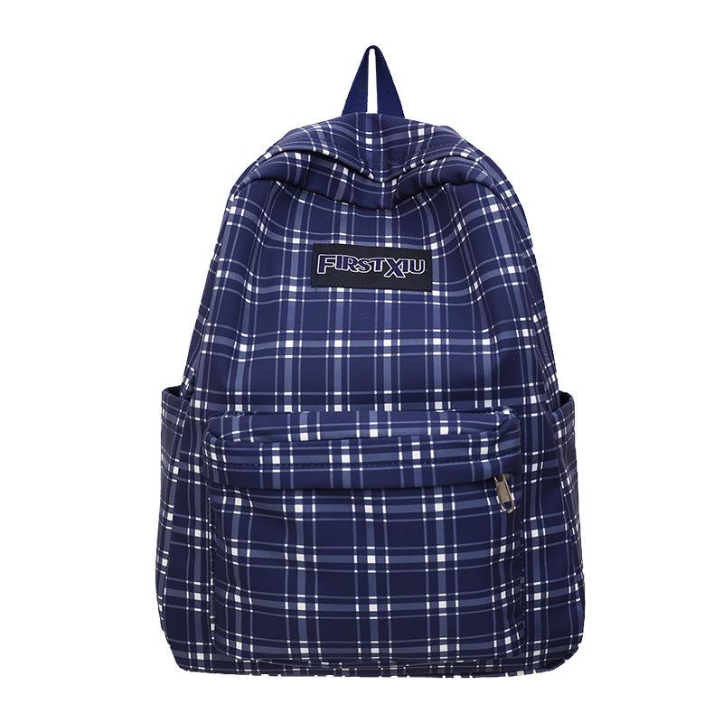 Клетчатый рюкзак для ученика средней школы, женский рюкзак большой вместимости синий