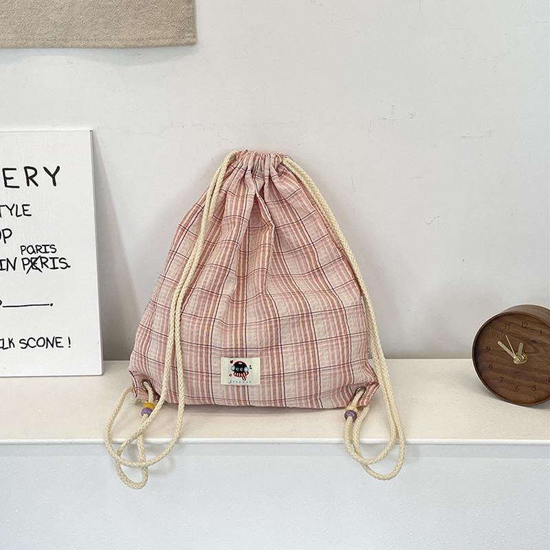 Клетчатый рюкзак на шнурке холщовый женский шоппер спортивная сумка для тренажерного зала тренировочный мешок простая сумка для поездок на работу розовый