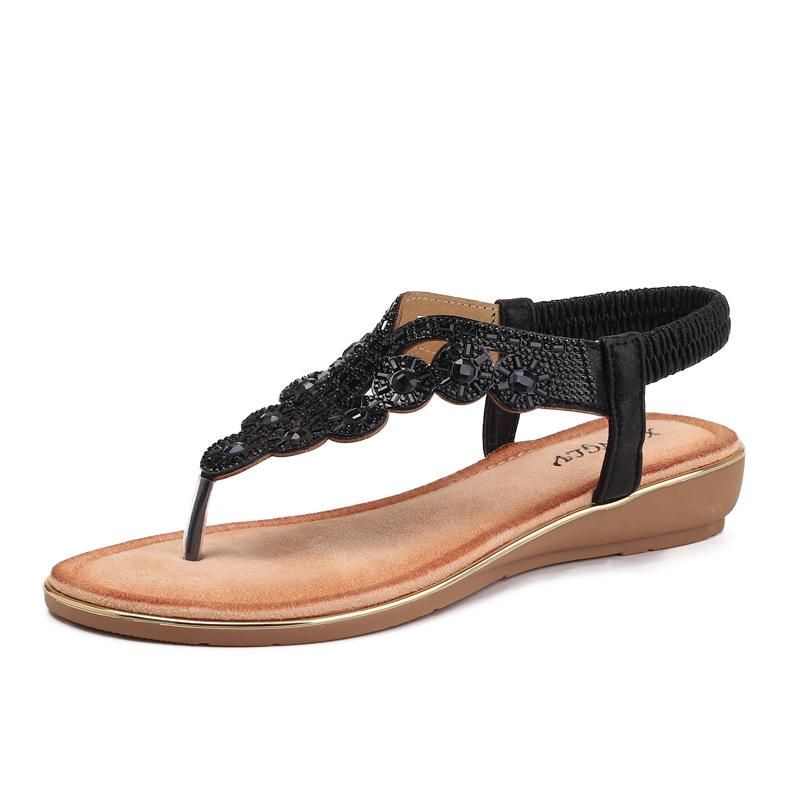 Клиновые тапочки для улицы лето новые Юго-Восточная Азия мода стразы богемные толстая подошва пляжные сандалии 36 чёрный