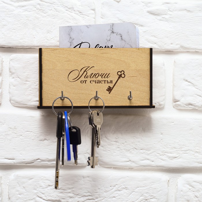 Ключница "Ключи от счастья", 13.6 х 7.3 см, Ключницы из фанеры