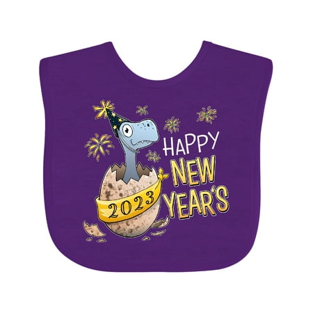 Inktastic Happy New Years 2023 Dinosaur Hatching Gift Baby Boy or Baby Girl Bib