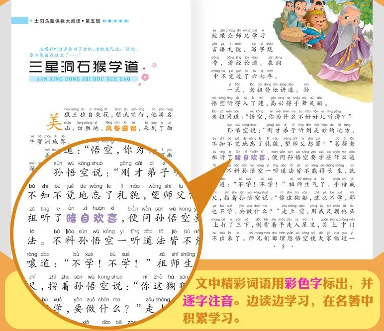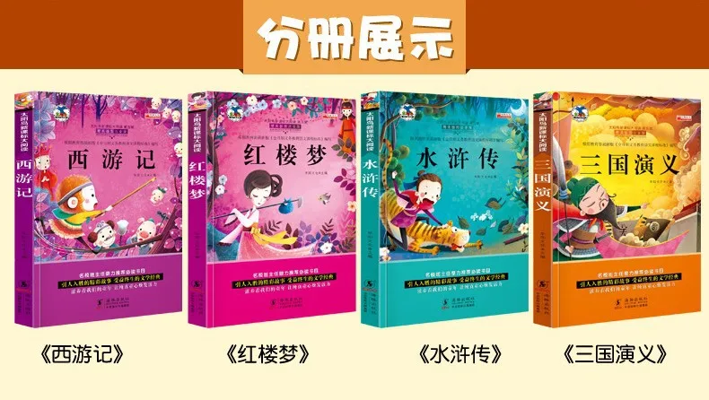 Книга китайская с четырьмя знаменитыми путешествиями на запад/водные поля/Романтика трех царств/мечта о Красной маньюзме детская фонетиче...