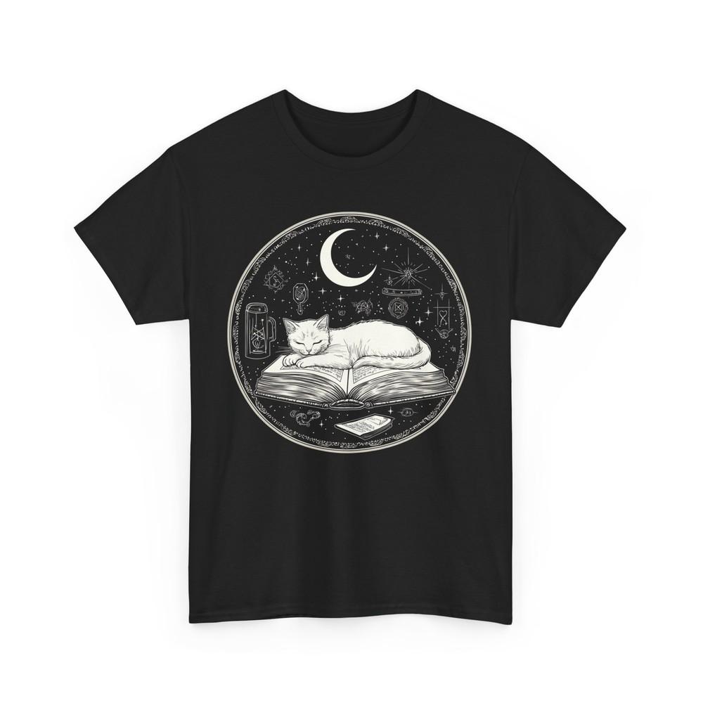 Книжная футболка | Смешная футболка для чтения | Мистическая ведьминская кошка, лежащая на футболке 4XL