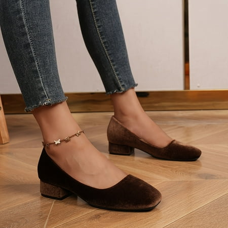 Women s Elegant Square Toe Dress - Comfortable Chunky Heels Slip-On Versatile Solid Color for Formal & Office Wear