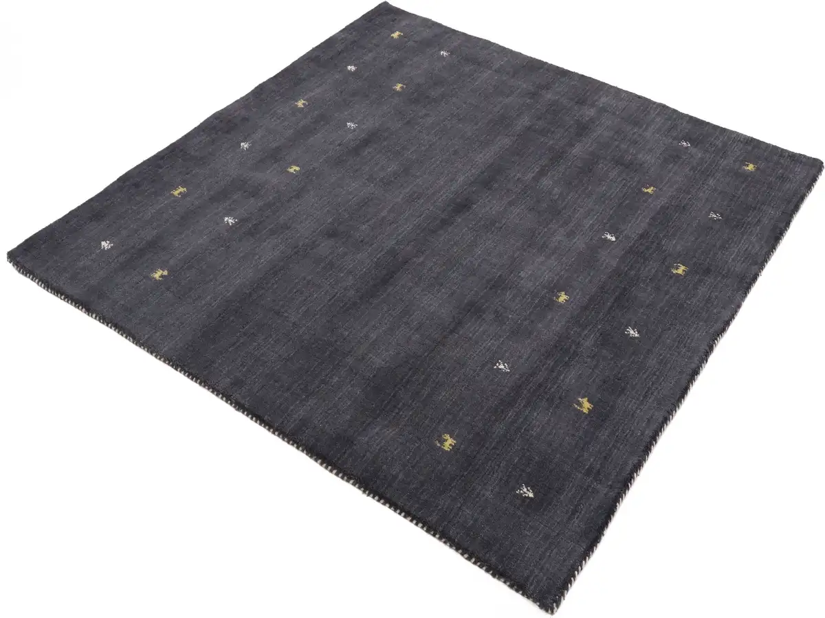 КоверКовер из тонкой шерсти "Gabbeh-Uni", квадратный, чистая шерсть, ручная работа, животный мотив Gabbeh Loom, специальная квадратная форма Carpetfine 120х120 см, черный