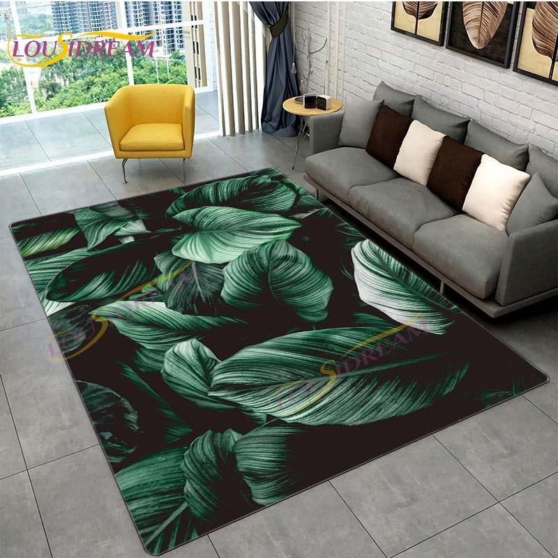 Ковер с тропическими листьями монстеры, современный ковер в стиле INS для гостиной, спальни, зеленый ковер с банановыми листьями, ковры с тропическими пальмовыми листьями