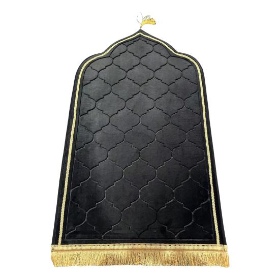 Коврик для молитвы с бахромой, декоративный, утолщенный, подарок на Рамадан, сплошной цвет, складной, нескользящий чёрный