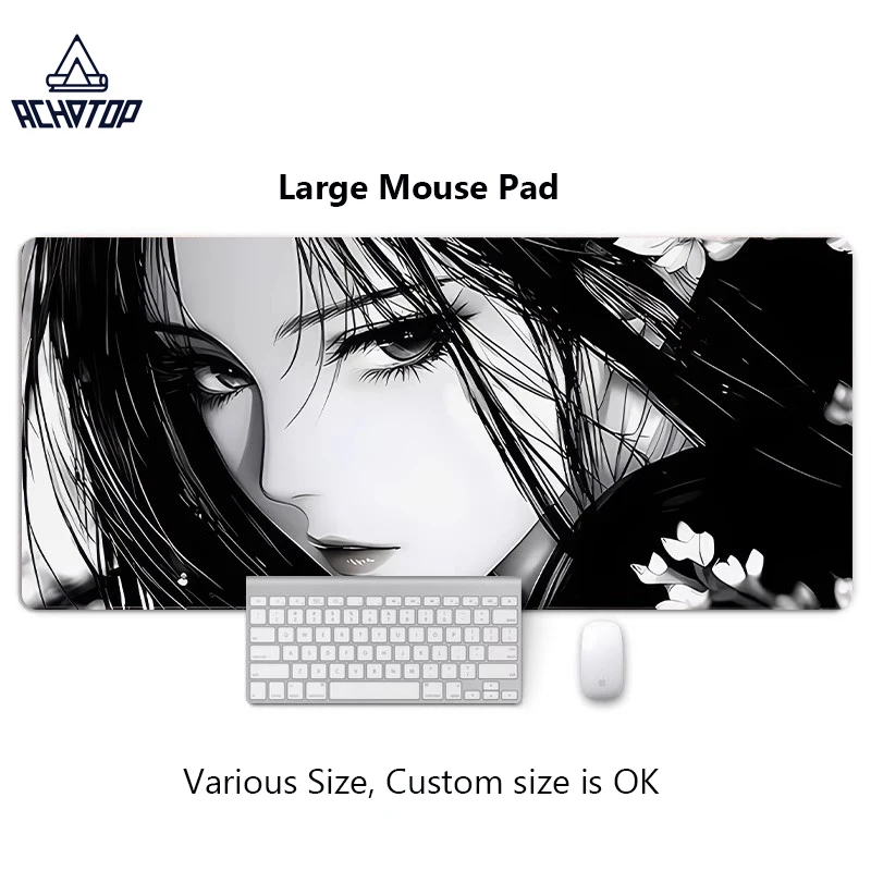Коврик для мыши в стиле аниме для девочек, большой противоскользящий резиновый игровой коврик для мыши, прочный настольный коврик с толстым краем шва, подходит для офиса и игр